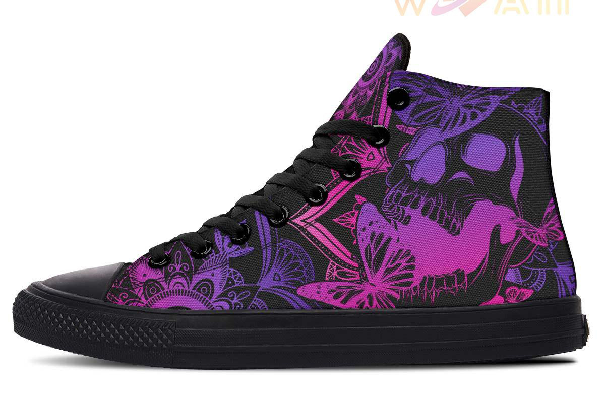 This Purple Butterflies And Skull High Top Canvas Shoes was originally designed to be basketball shoes. These women’s and men’s casual shoes have become the go to walking shoes for just about any situation.