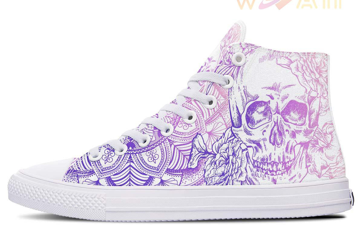 This Purple Color Blend Skull High Top Canvas Shoes was originally designed to be basketball shoes. These women’s and men’s casual shoes have become the go to walking shoes for just about any situation.