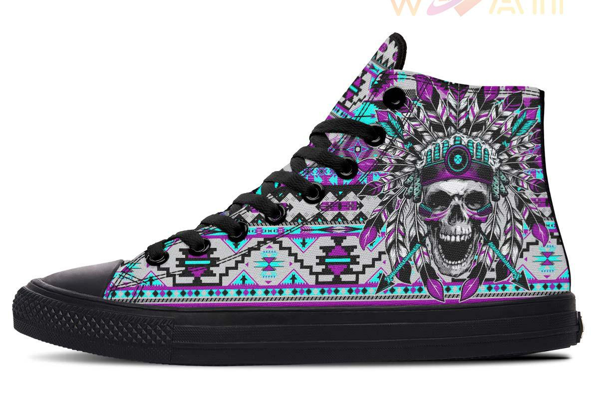 Purple Skull Chief High Top Canvas Shoes