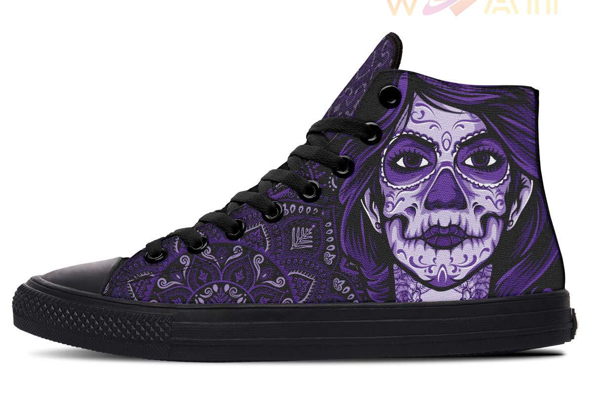 Purple Sugar Skull Woman High Top Canvas Shoes