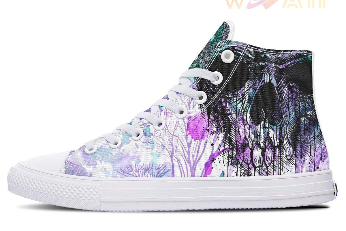 Purple Watercolor Skull High Top Canvas Shoes