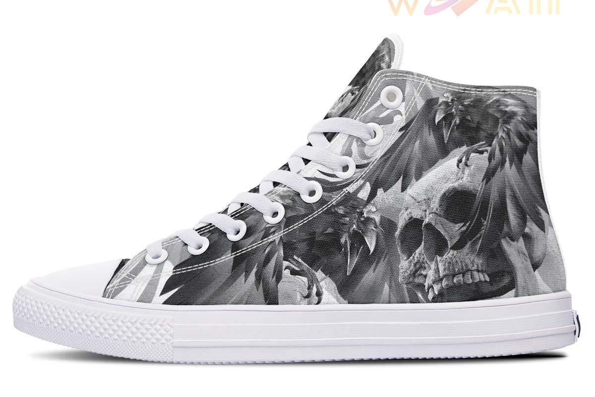 Raven On A Skull Tattoo High Top Canvas Shoes
