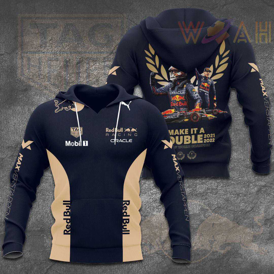 This Max Verstappen Make It A Double T-shirt, Hoodie, Sweatshirt 3D will make a perfect gift for Red Bull Racing fans.