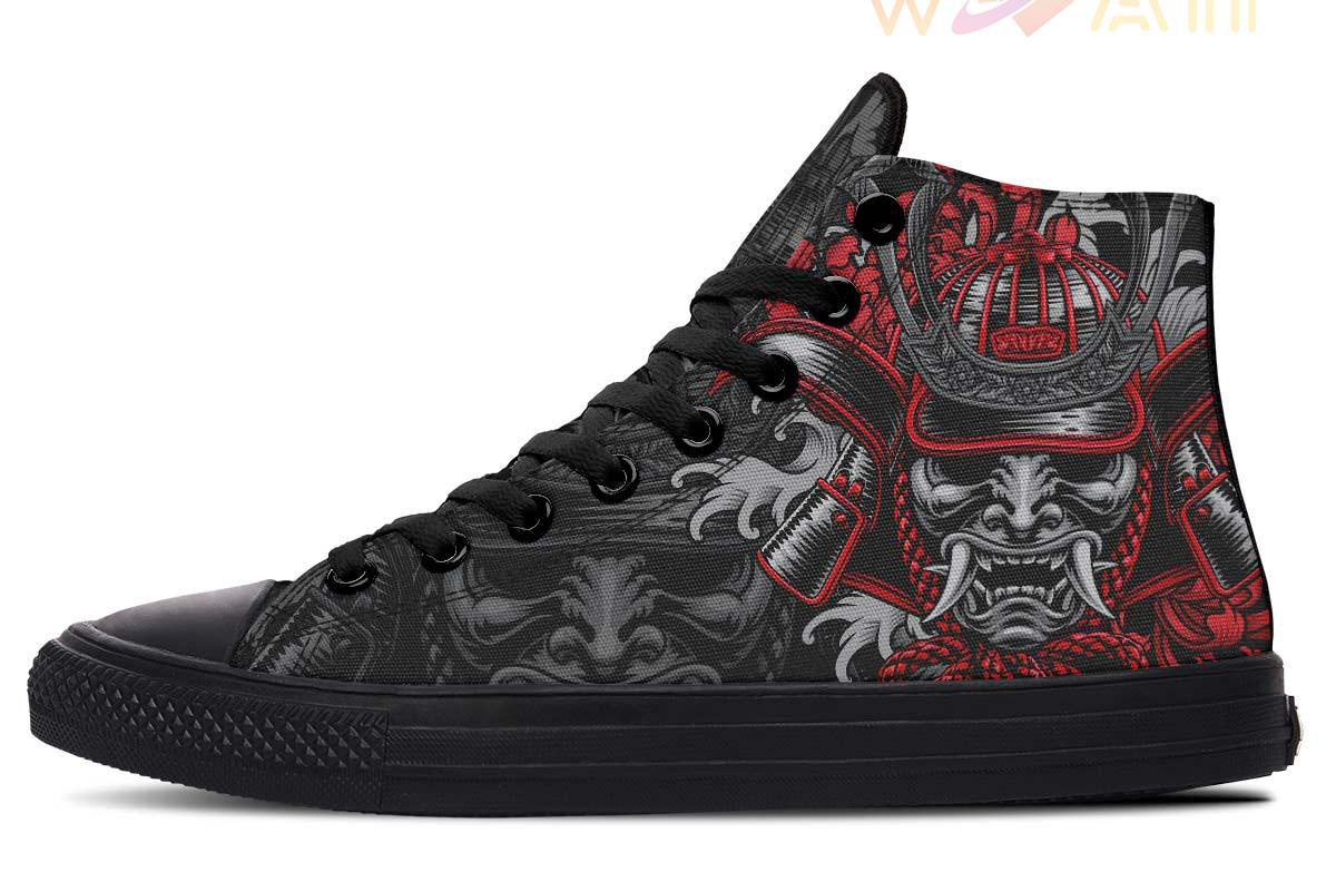 Red Japanese Warrior High Top Canvas Shoes