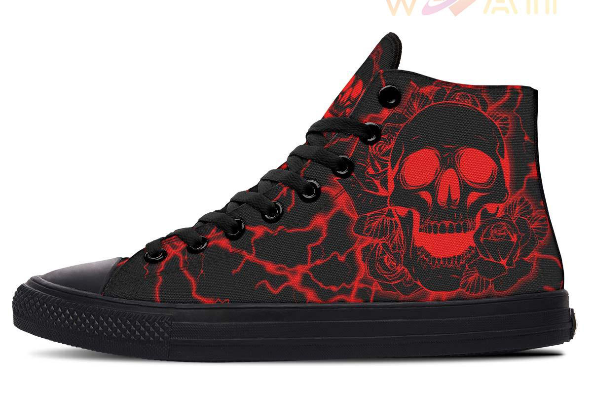 Red Lightning Skull And Rose High Top Canvas Shoes