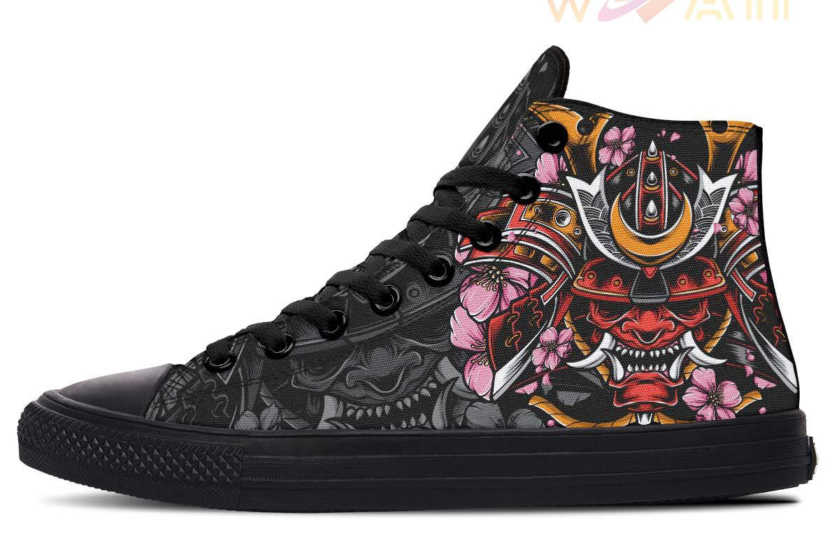 Red Mempo Mask Pink Flowers High Top Canvas Shoes