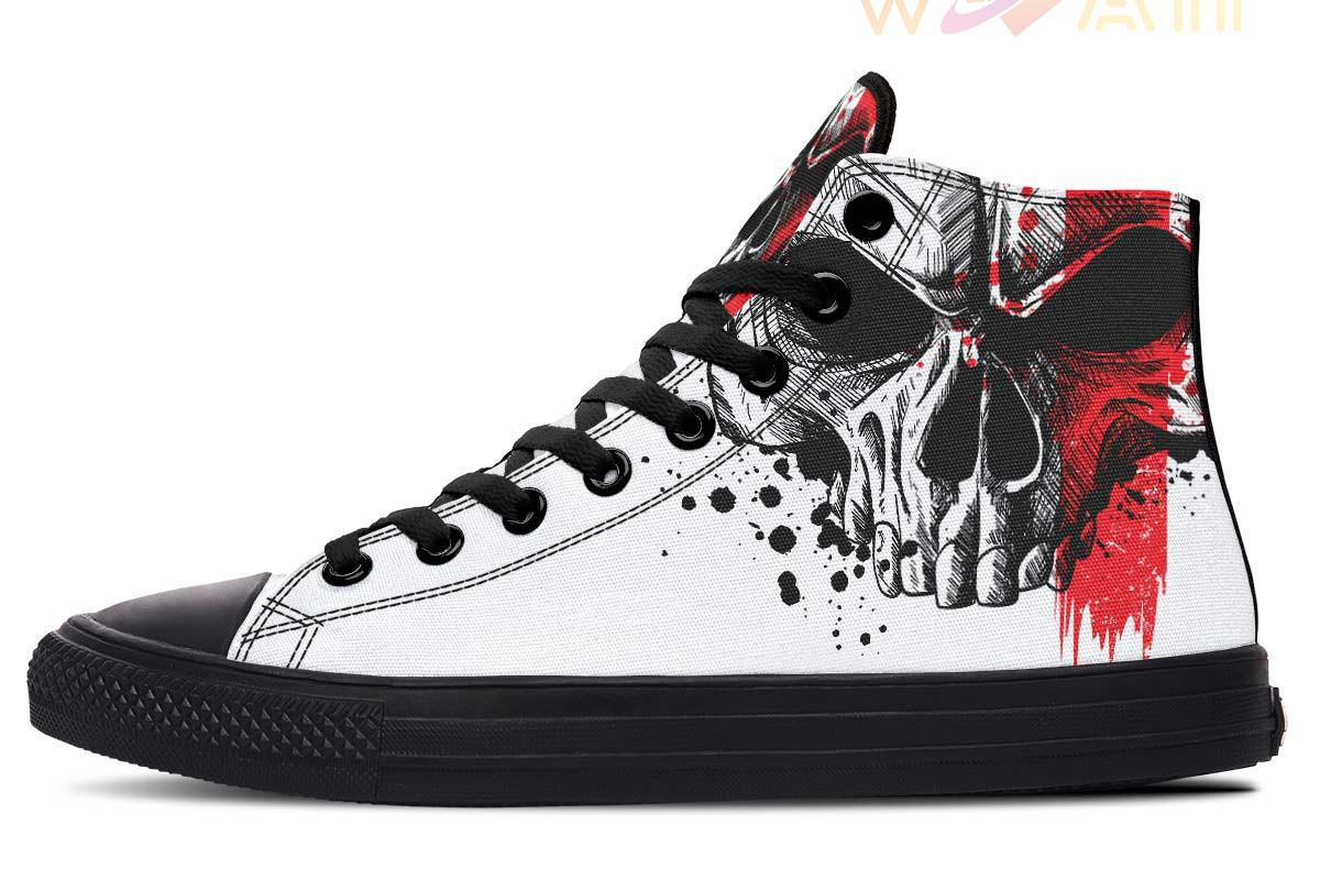 Red Stripe Skull High Top Canvas Shoes