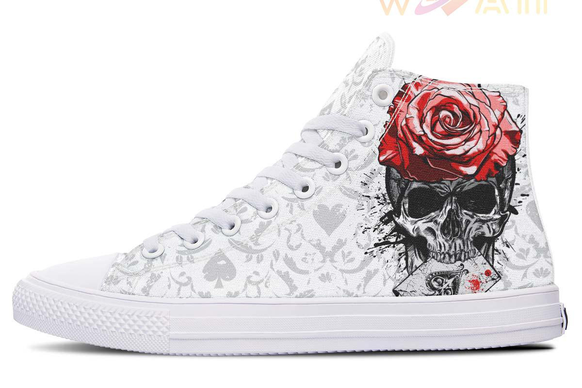 Rose Skull Ace Of Spade High Top Canvas Shoes