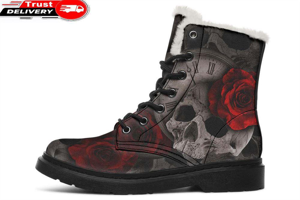 Rose Skull Clock Faux Fur Leather Boots is a great pair of boots can really complete a look. Prep for unpredictable weather conditions or smart-casual plans with our edit of leather’s boots.