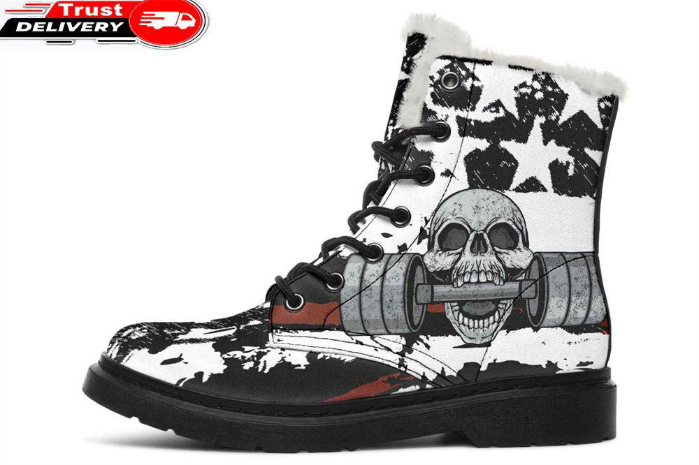 Rough Flag Skull Faux Fur Leather Boots