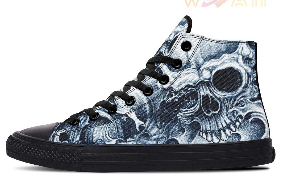 Sea Wave And Skull High Top Canvas Shoes