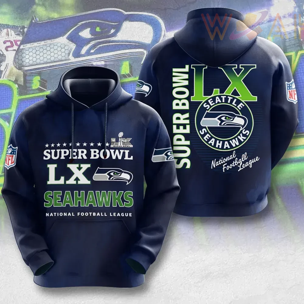 Seattle Seahawks Super Bowl LX 3D T-shirt & Hoodies