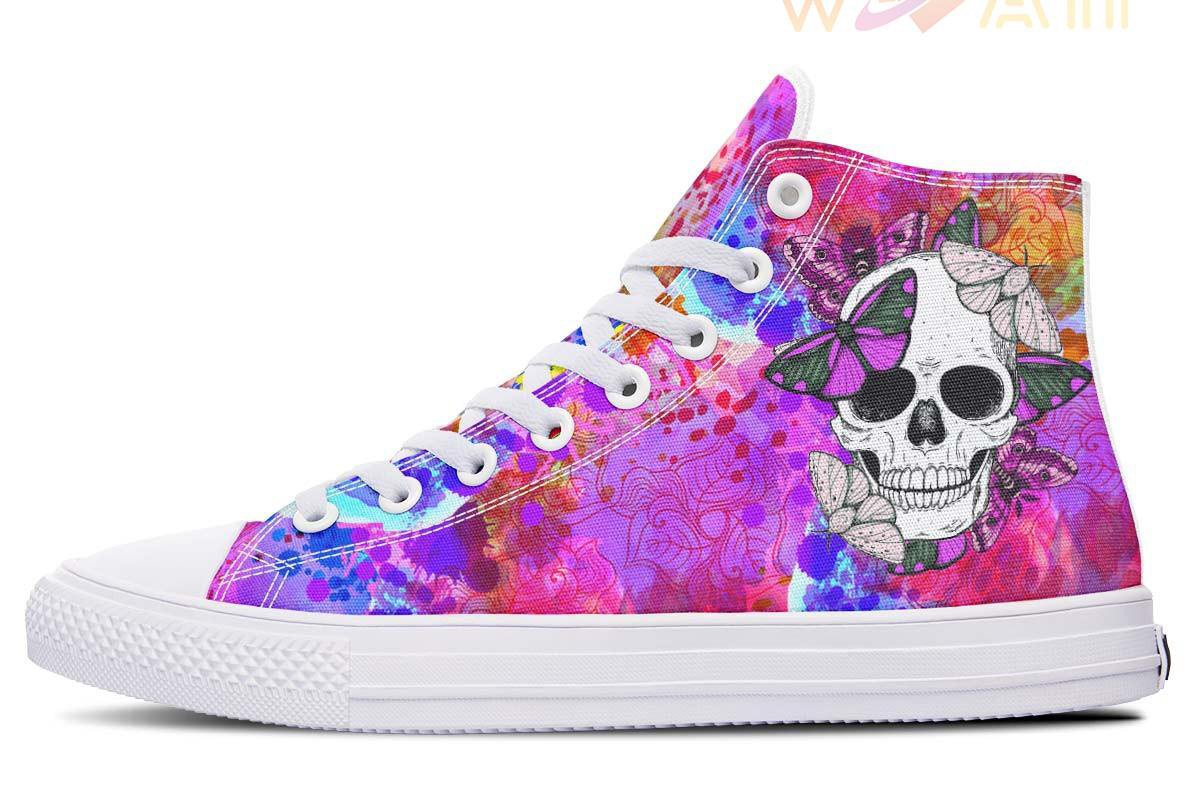 Skull And Butterflies High Top Canvas Shoes