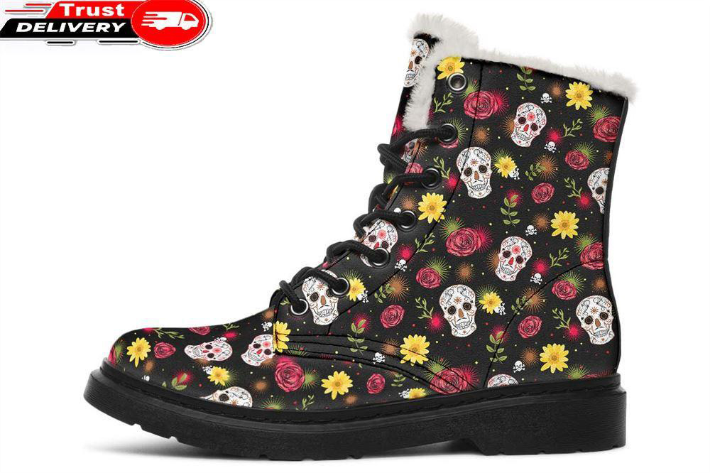 Skull And Daisy Flowers Faux Fur Leather Boots is a great pair of boots can really complete a look. Prep for unpredictable weather conditions or smart-casual plans with our edit of leather’s boots.
