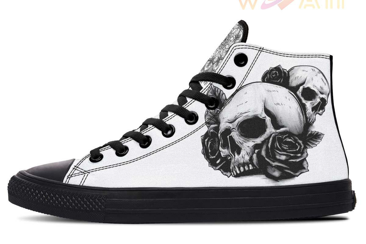Skull And Mandala White High Top Canvas Shoes