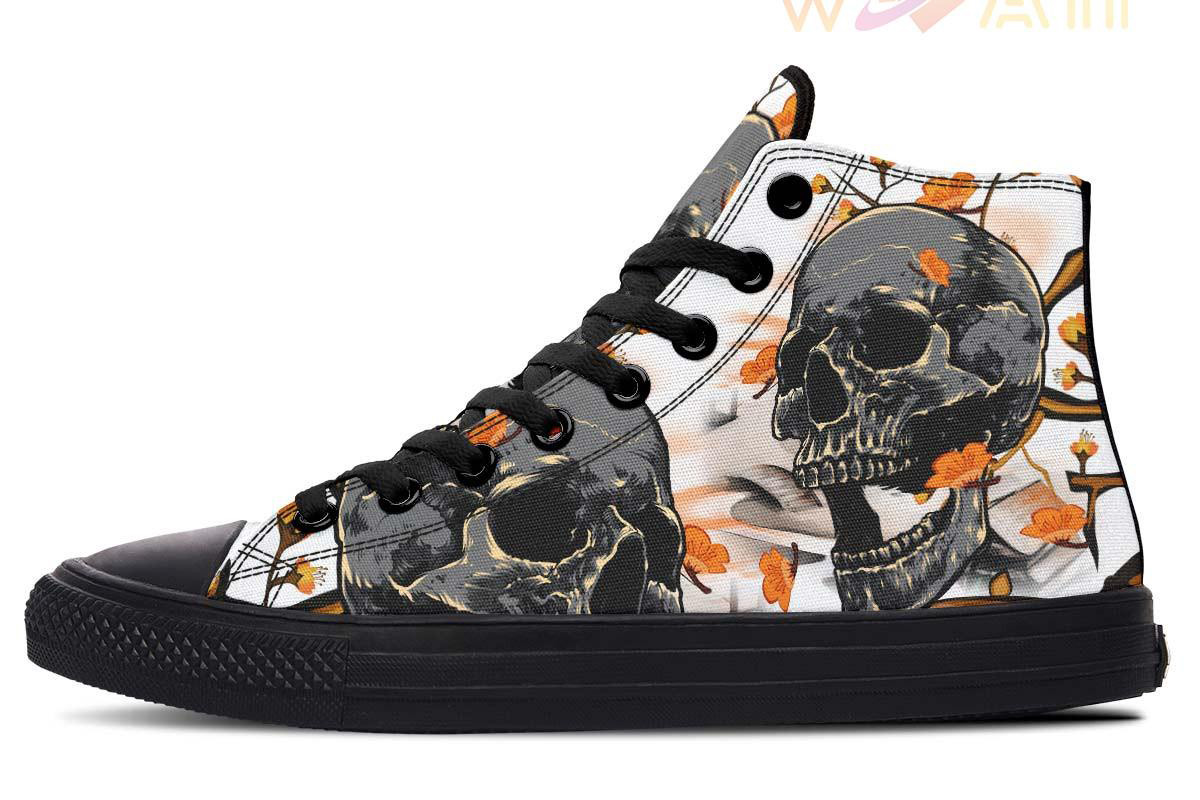 Skull And Orange Flowers High Top Canvas Shoes