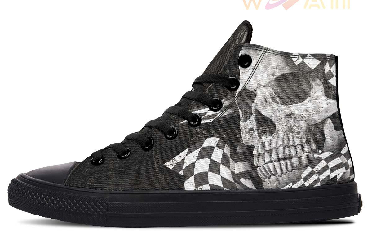 Skull And Racing Flag High Top Canvas Shoes