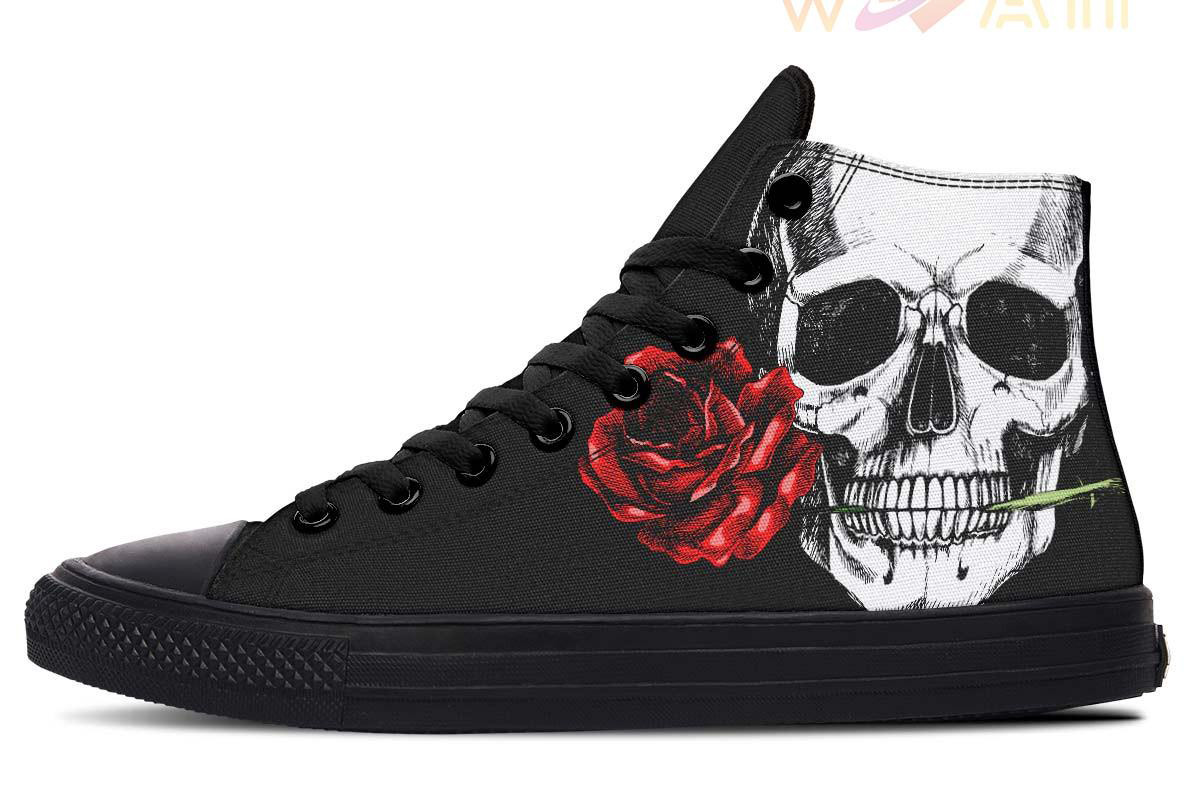 Skull And Rose Black High Top Canvas Shoes