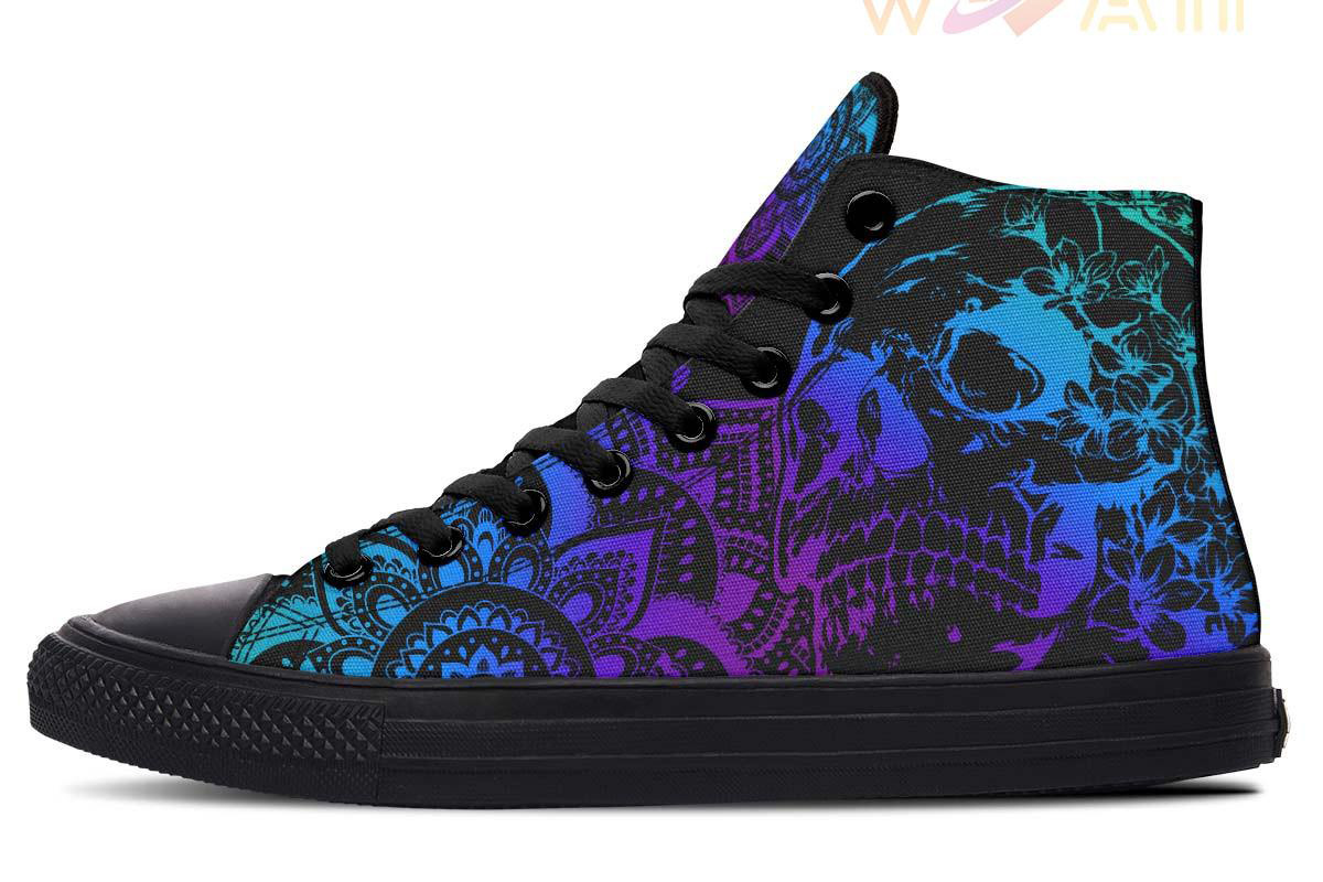 Skull Art And Purple Mandala High Top Canvas Shoes