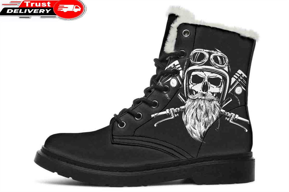 Skull Beard Faux Fur Leather Boots