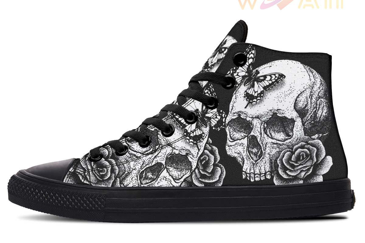 Skull Butterfly And Rose High Top Canvas Shoes