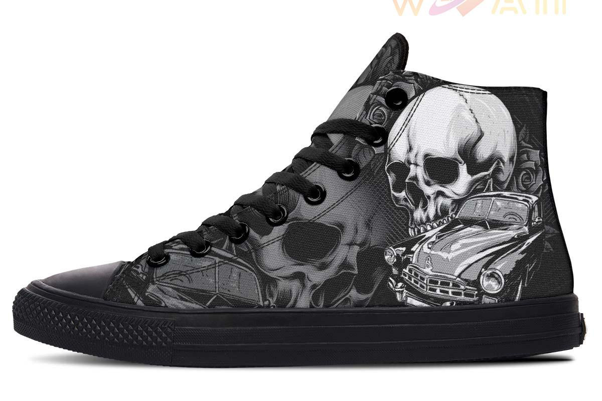 This Skull Car And Rose High Top Canvas Shoes was originally designed to be basketball shoes. These women’s and men’s casual shoes have become the go to walking shoes for just about any situation.