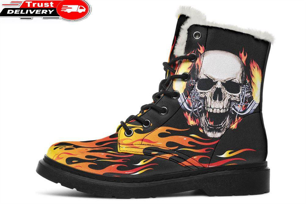 Skull Fire Background Faux Fur Leather Boots is a great pair of boots can really complete a look. Prep for unpredictable weather conditions or smart-casual plans with our edit of leather’s boots.