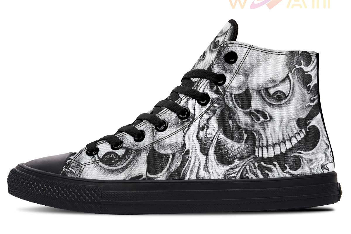 This Skull In Grey Waves High Top Canvas Shoes was originally designed to be basketball shoes. These women’s and men’s casual shoes have become the go to walking shoes for just about any situation.