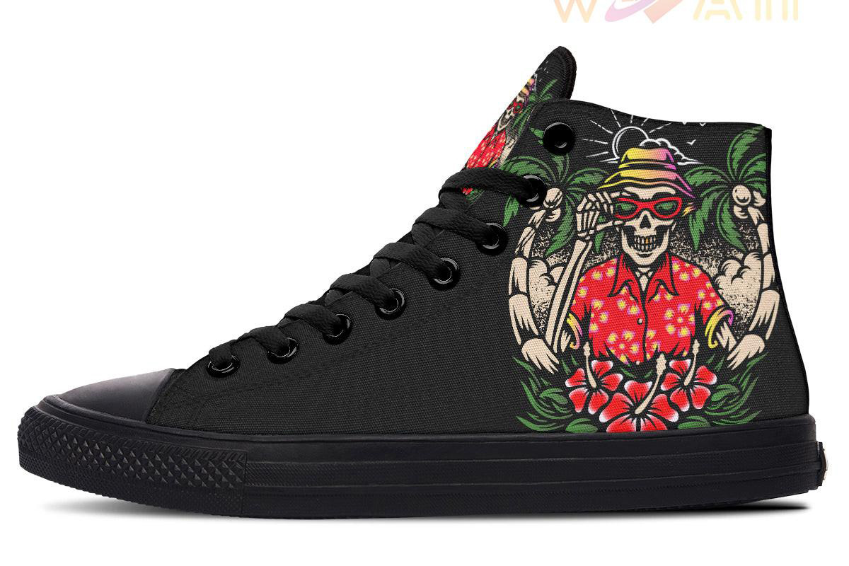 This Skull Living The Life High Top Canvas Shoes was originally designed to be basketball shoes. These women’s and men’s casual shoes have become the go to walking shoes for just about any situation.