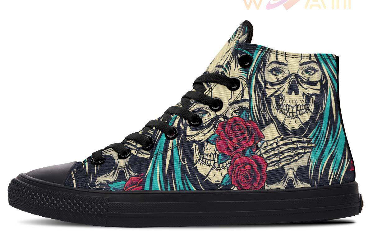 Skull Mask Women High Top Canvas Shoes