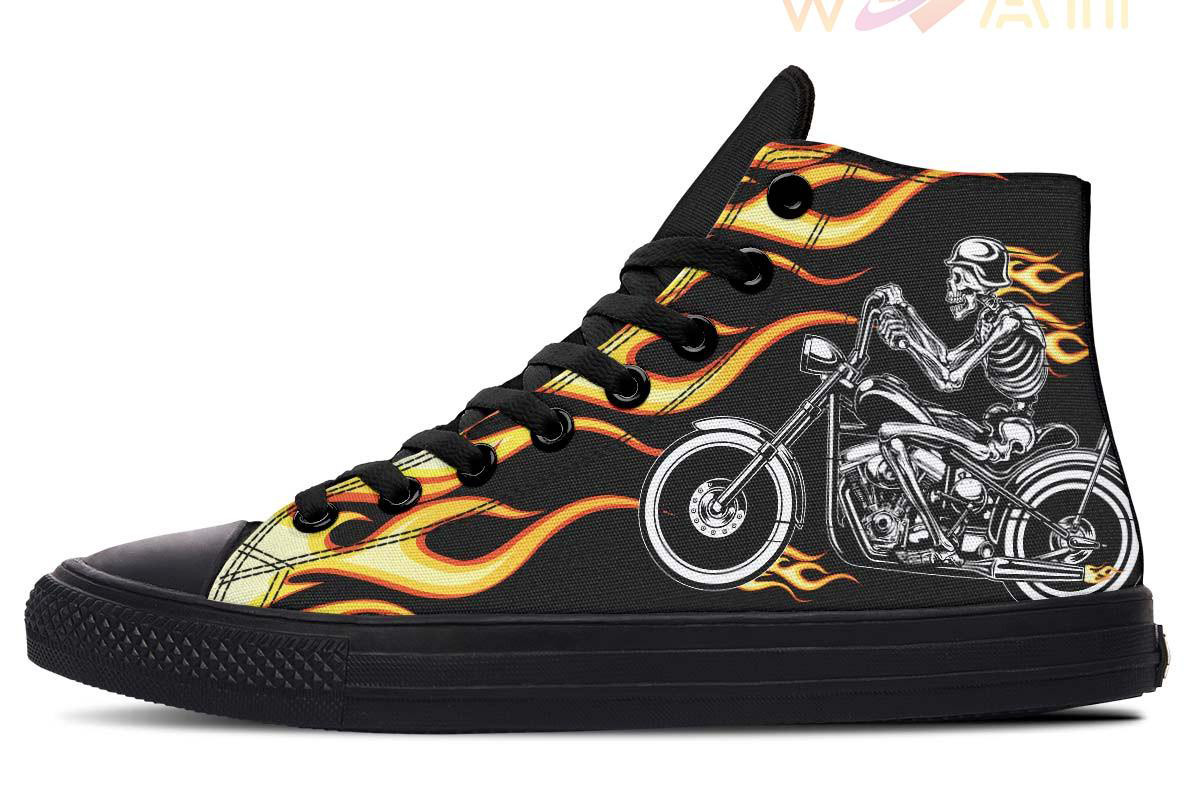 Skull Rider On Fire High Top Canvas Shoes
