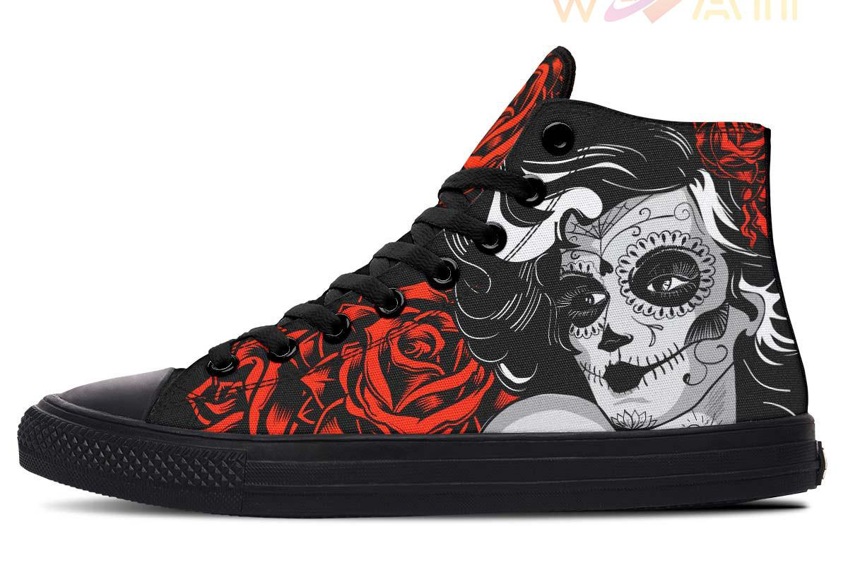 Sugar Skull Cat Women High Top Canvas Shoes
