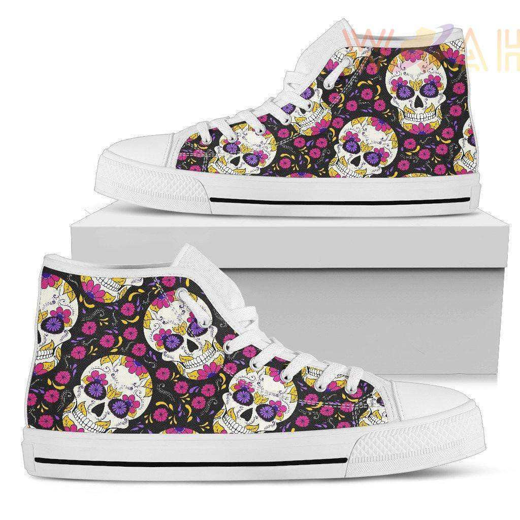 Sugar Skull Floral Pattern Unisex High Top Canvas Shoes