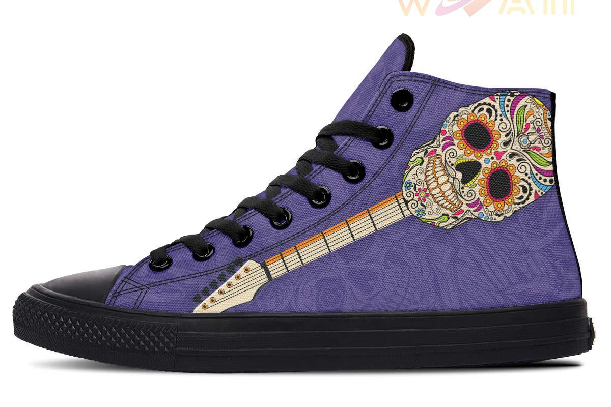 This Sugar Skull Guitar High Top Canvas Shoes was originally designed to be basketball shoes. These women’s and men’s casual shoes have become the go to walking shoes for just about any situation.