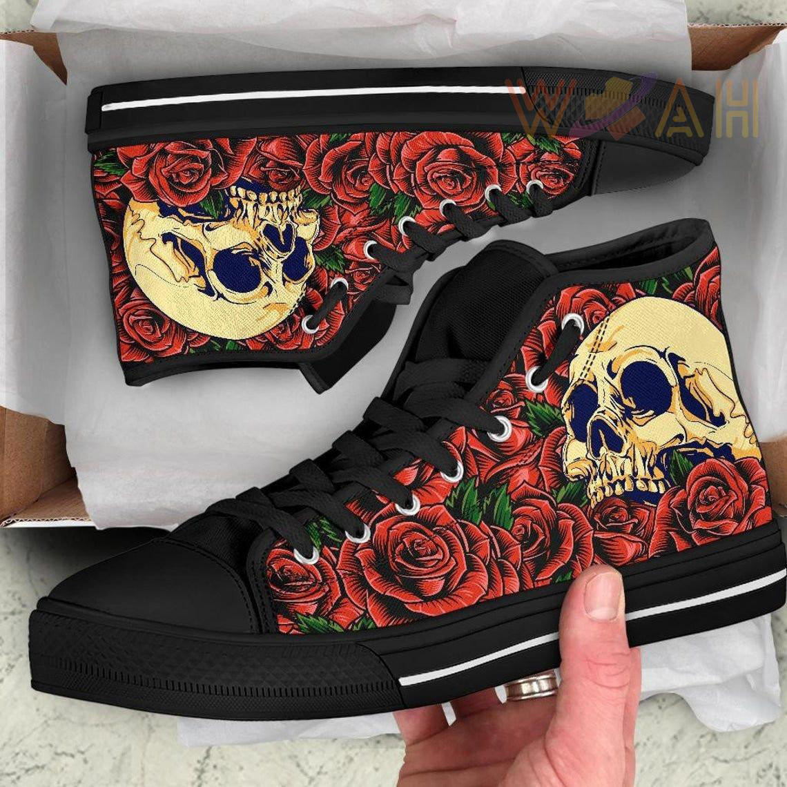 This Sugar Skull Rose Evil Unisex High Top Canvas Shoes was originally designed to be basketball shoes. These women’s and men’s casual shoes have become the go to walking shoes for just about any situation.