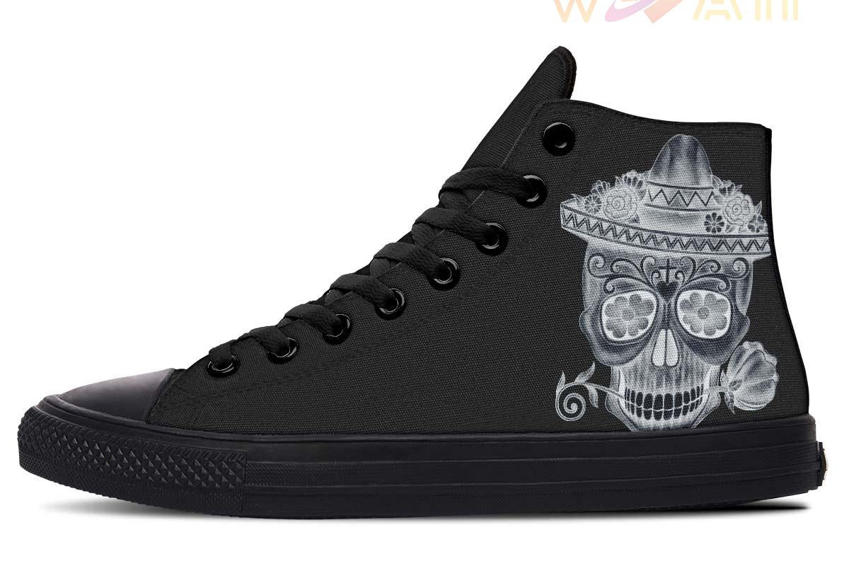 This Sugar Skull With Hat High Top Canvas Shoes was originally designed to be basketball shoes. These women’s and men’s casual shoes have become the go to walking shoes for just about any situation.