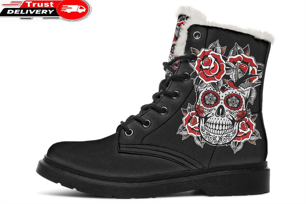 Sugar Skull With Red Roses Faux Fur Leather Boots is a great pair of boots can really complete a look. Prep for unpredictable weather conditions or smart-casual plans with our edit of leather’s boots.