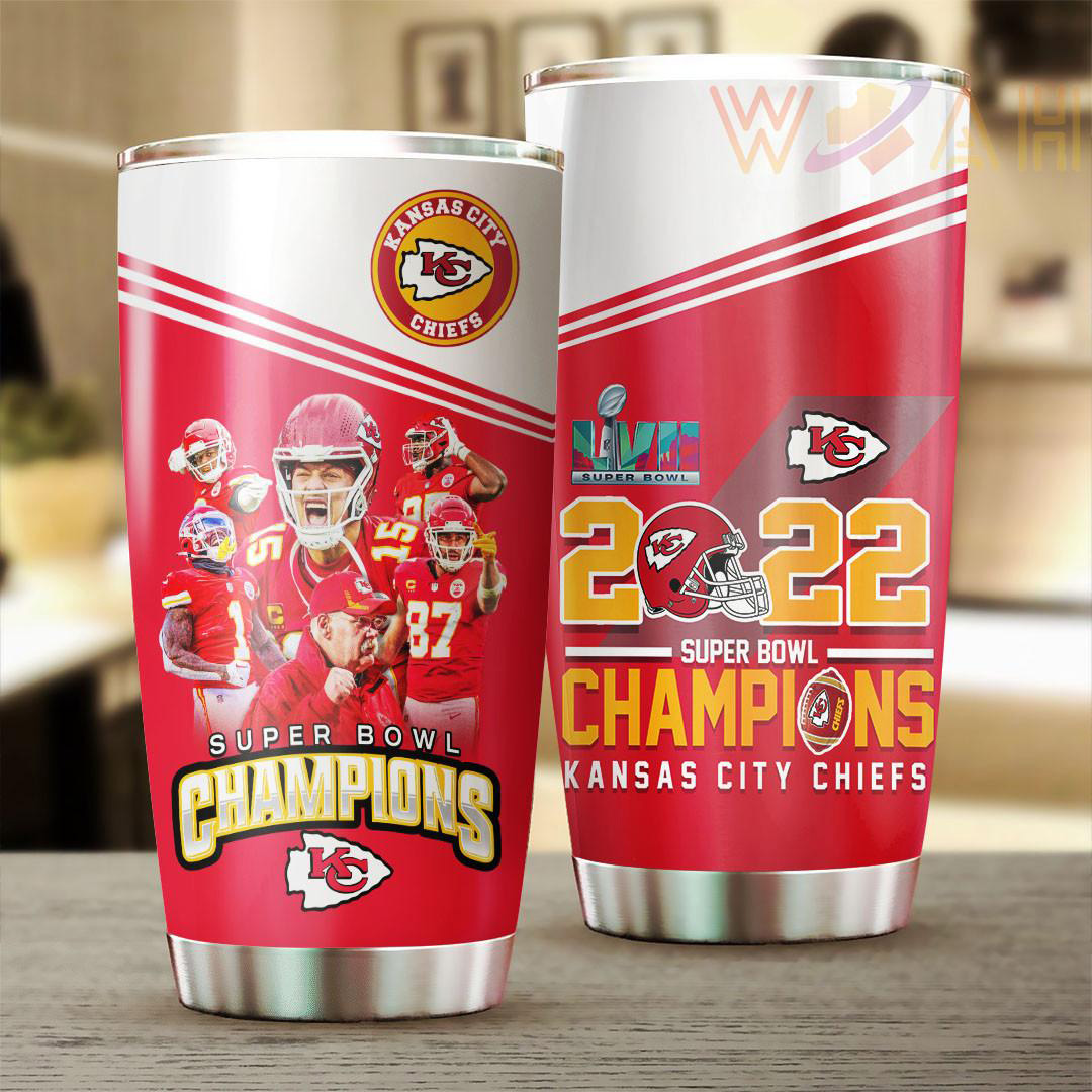 A Super Bowl LVII Kansas City Chiefs tumbler cup is a type of drinkware that is designed with the team’s logo and colors. Tumbler cups are commonly used for holding cold or hot beverages and are made from materials such as stainless steel, plastic, or ceramic. They are portable and often have a lid to prevent spills. They are popular among fans of the Super Bowl LVII Kansas City Chiefs and are often used to show support for the team. This Super Bowl LVII Kansas City Chiefs tumbler cup will make a perfect gift for Kansas City Chiefs fans.