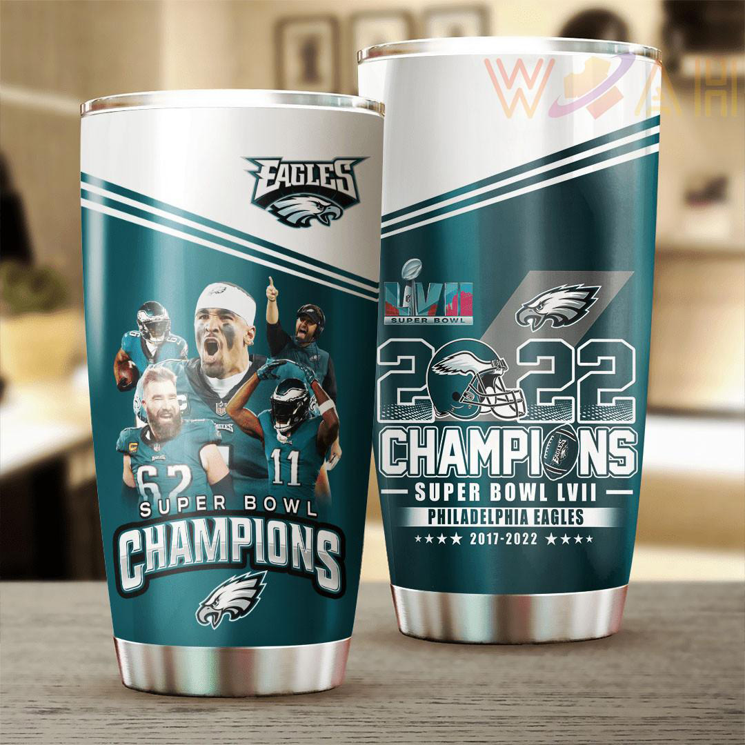 A Super Bowl LVII Philadelphia Eagles tumbler cup is a type of drinkware that is designed with the team’s logo and colors. Tumbler cups are commonly used for holding cold or hot beverages and are made from materials such as stainless steel, plastic, or ceramic. They are portable and often have a lid to prevent spills. They are popular among fans of the Super Bowl LVII Philadelphia Eagles and are often used to show support for the team. This Super Bowl LVII Philadelphia Eagles tumbler cup will make a perfect gift for Philadelphia Eagles fans.