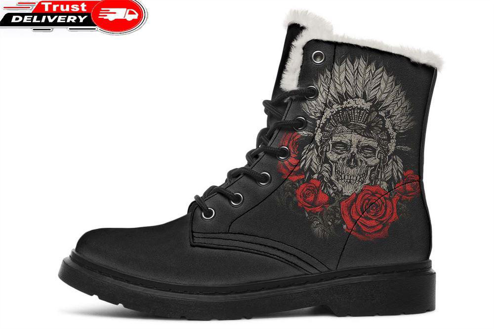 Tattoo Native Chief Faux Fur Leather Boots