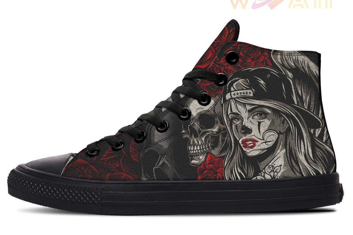 Tattoo Style Skull Rose Art High Top Canvas Shoes