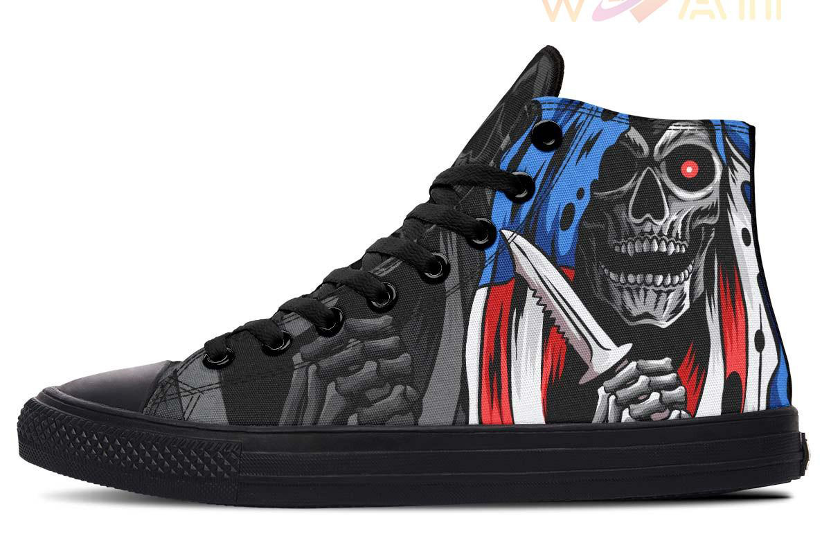 This Terminator Eye Skull High Top Canvas Shoes was originally designed to be basketball shoes. These women’s and men’s casual shoes have become the go to walking shoes for just about any situation.
