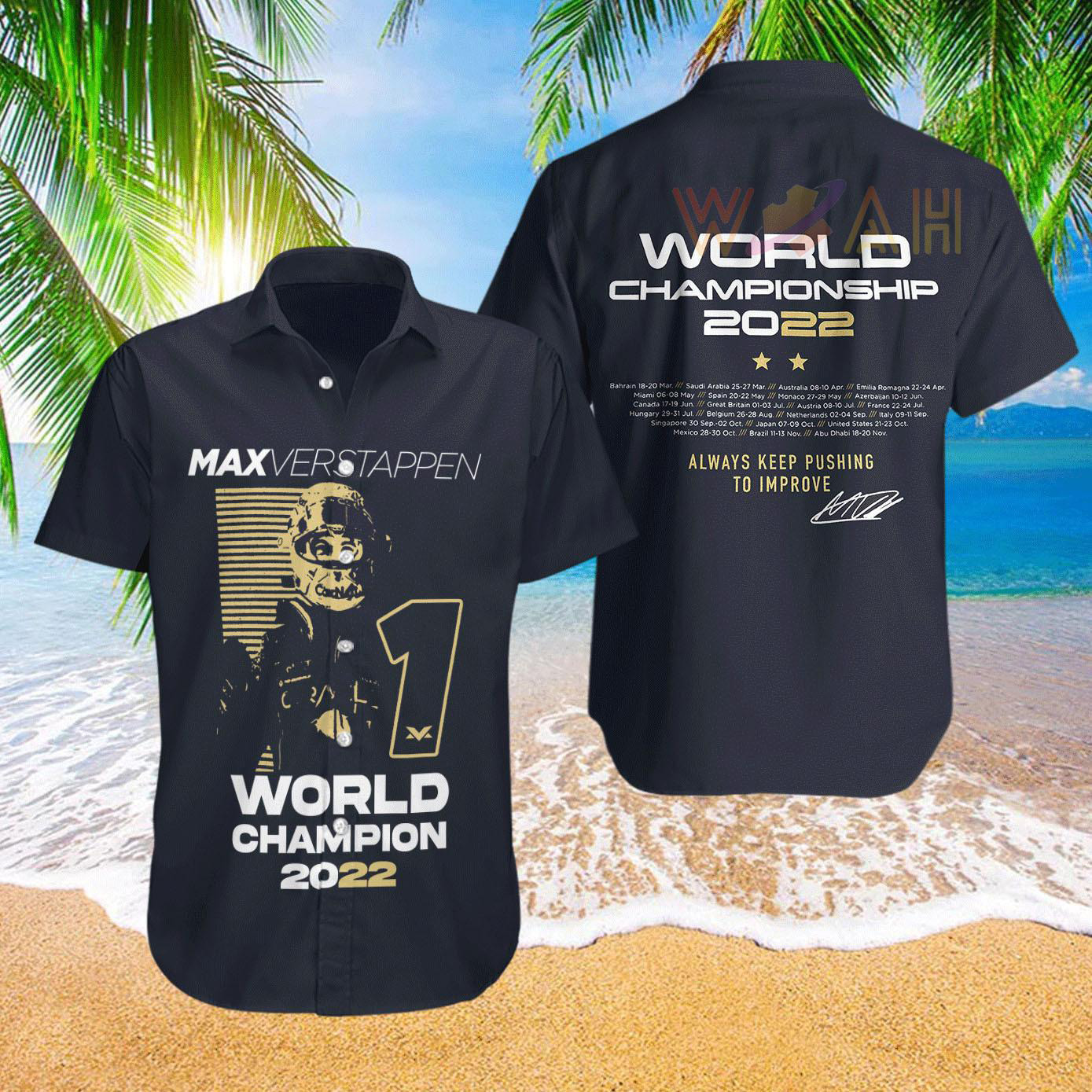 Production Time: 3-7 business days. This Max Verstappen 2022 hawaiian shirt is made-to-order so the production time will be a little bit longer than usual. Please be patient.