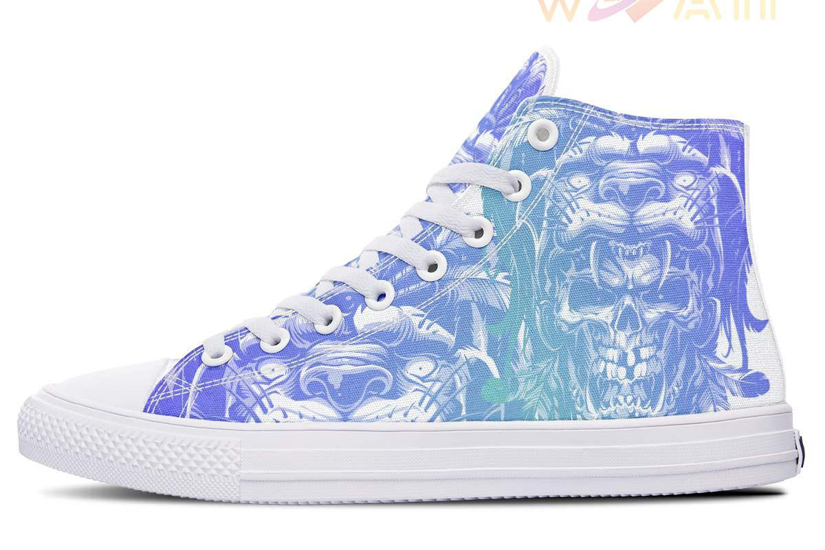 This Tiger Skull Chief High Top Canvas Shoes was originally designed to be basketball shoes. These women’s and men’s casual shoes have become the go to walking shoes for just about any situation.