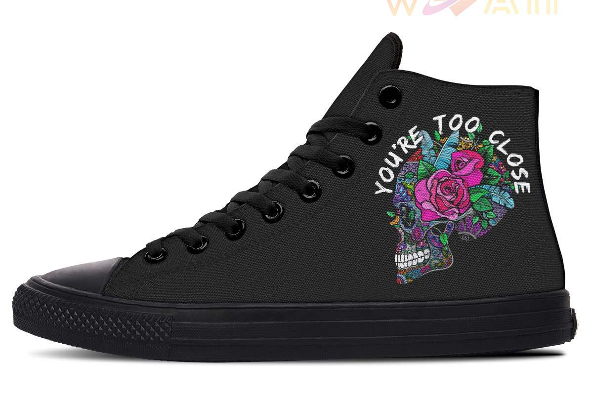 This Too Close Flowers High Top Canvas Shoes was originally designed to be basketball shoes. These women’s and men’s casual shoes have become the go to walking shoes for just about any situation.