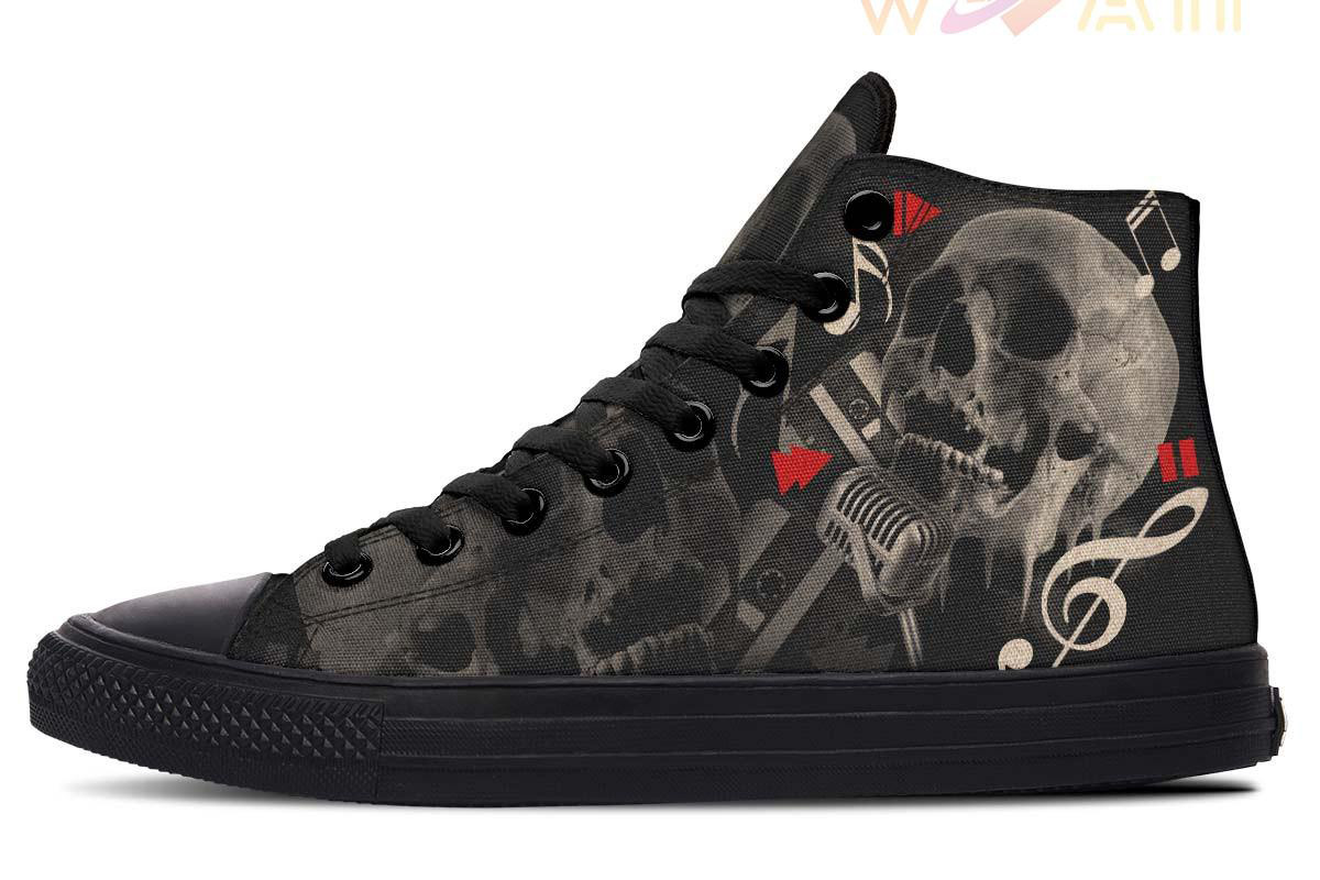 Treble Clef Skull High Top Canvas Shoes