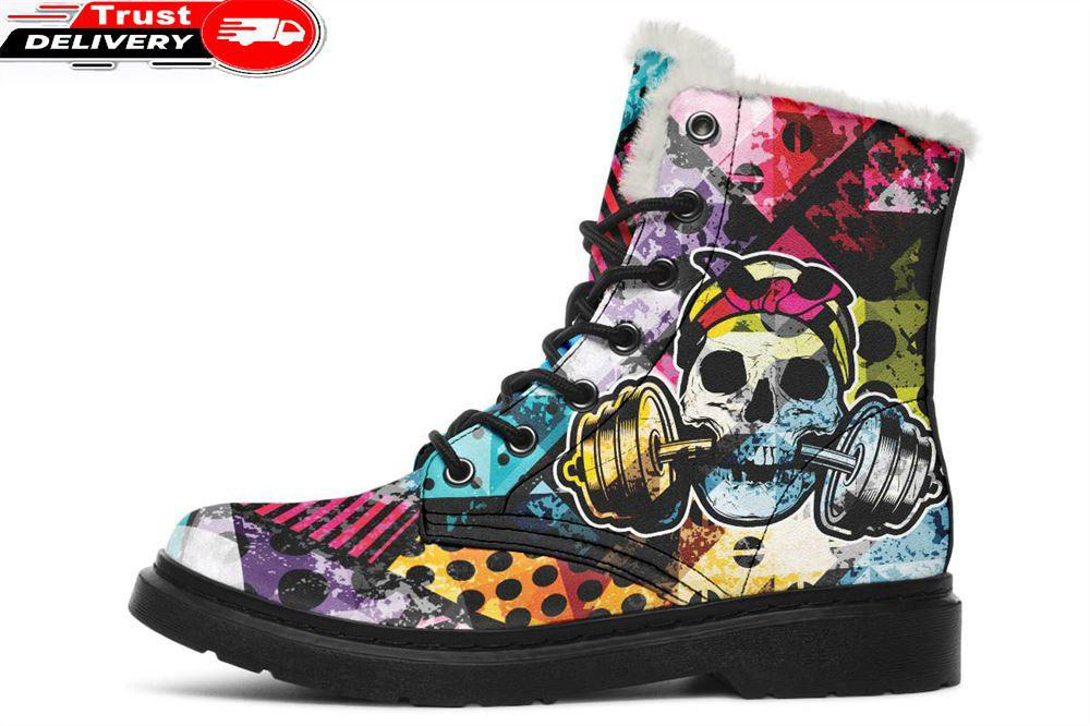 Urban Lady Gym Skull Faux Fur Leather Boots