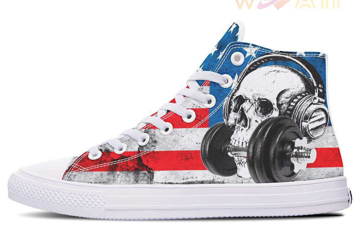 This Usa Lifting High Top Canvas Shoes was originally designed to be basketball shoes. These women’s and men’s casual shoes have become the go to walking shoes for just about any situation.