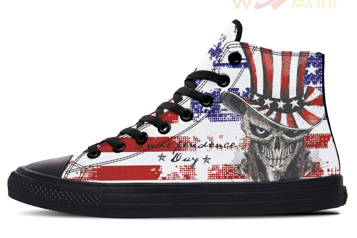 This Usa Skull With Hat High Top Canvas Shoes was originally designed to be basketball shoes. These women’s and men’s casual shoes have become the go to walking shoes for just about any situation.