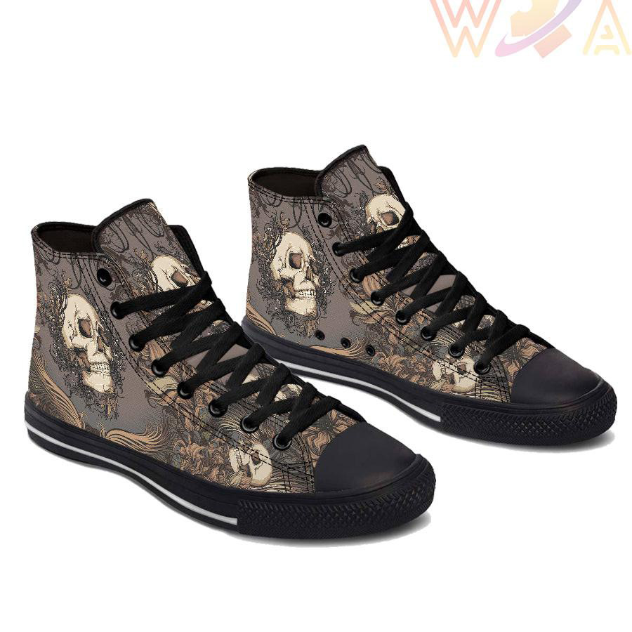Vintage Flower Skull High Top Shoes